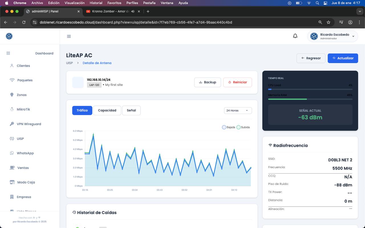 ERP para proveedores de internet con automatización de cortes, facturación y monitoreo remoto.