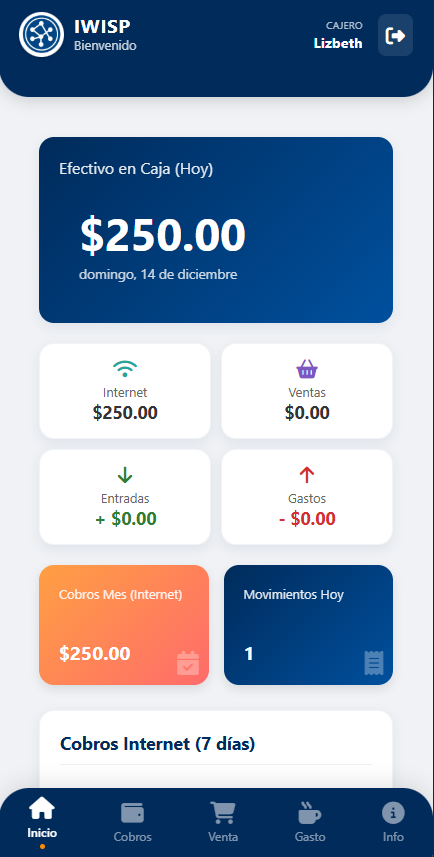 Aplicacion enfocada en el cobro de internet movil, ingresos y egresos.